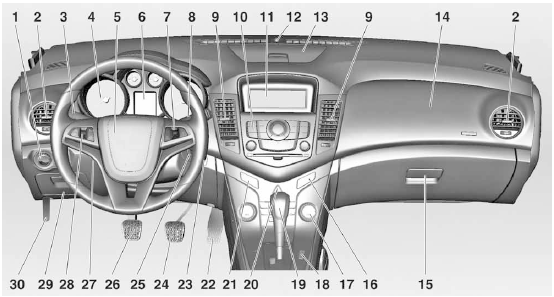 Chevrolet Cruze: Краткое описание приборной панели