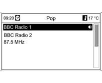 Информационно-развлекательная система сохраняет эти радиостанции, отсортированные по типу программы, в соответствующем списке категорий.