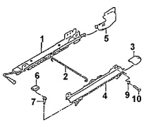 5. Демонтировать накладки внутреннего и наружного полозьев сиденья и механизмы продольной регулировки сиденья..