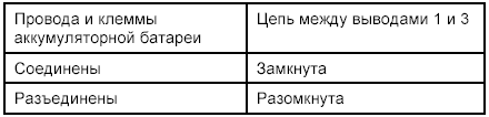 в) Проверьте состояние цепи между выводами 1 и 3 управляющего реле при подсоединенных и отсоединенных от клемм аккумуляторной батареи проводах.