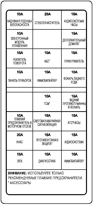 Chevrolet Lacetti: Внутренний блок предохранителей