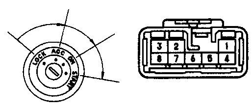 клеммами, когда ключ в замке зажигания повернут в различные положения.